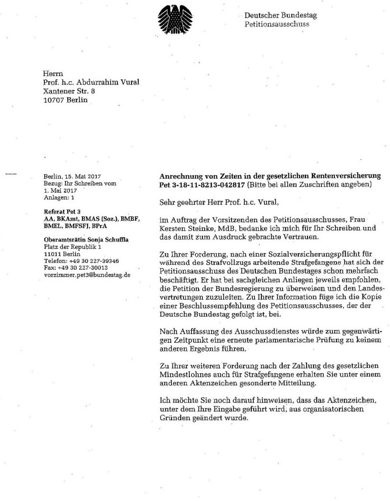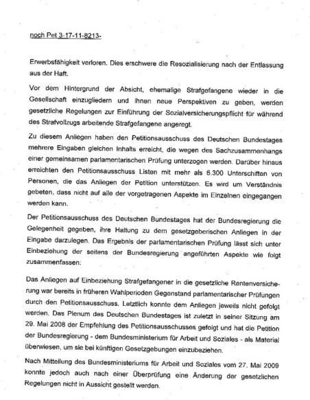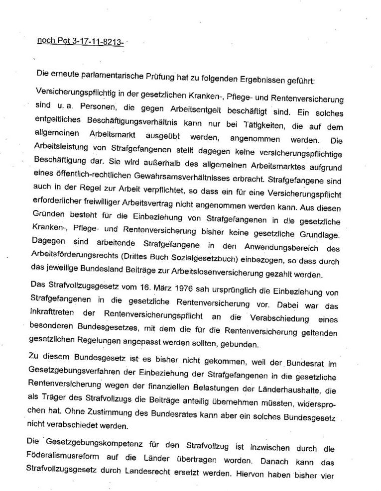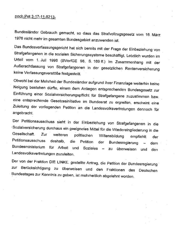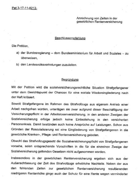Meine Petition beim Deutschen Bundestag über die Anrechnung von Zeiten in der gesetzlichen Rentenversicherung für Strafgefangene